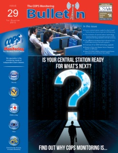FIND OUT WHY COPS MONITORING IS... IS YOUR CENTRAL STATION READY FOR WHAT'S NEXT? Fire PERS 2-Way Security Video Environmental, Process, & Custom Monitoring The COPS Monitoring We specialize in the monitoring needs of independent alarm dealers. Central Station Excellence Awards ‘14 WINNER Central Station of the Year I S S U E 29 1 s t Q u a r t e r 2 0 1 5 In this issue Is your central station ready for what's next? • Find out why your future is bright with COPS Monitoring The evolution of central station technology • Changing demands on central stations and how COPS is setting new technology standards on fail-safe monitoring The difference between fault-tolerance and COPS Monitoring's fail-safe systems Overview of our $2M technology upgrade Details of the new Dealer Action Required report on MPower New IP/GSM/CDMA monitoring and home automation services from SecureNet