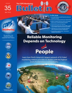 Reliable Monitoring Depends on Technology Learn how North America's largest network of UL listed monitoring stations provides its dealers with the highest level of redundancy in the Industry. People Fire PERS 2-Way Security Video Environmental, Process, & Custom Monitoring The COPS Monitoring We specialize in the monitoring needs of independent alarm dealers. I S S U E 35 April 2018 In this issue  Is 6 central stations overkill? Read this article and decide for yourself  Howwe are working to protect your customer data  Want to compete in the low-cost/no-cost market? Now you can, with the Equalizer Program  Enhanced two-way voice reporting  COPS supports DSC iotega, Numera 4200x, and the world's smallest cellular communicator fromM2M  COPS gives you access to Interlogix UltraSync with no minimum purchase requirements  Say goodbye to double entry – Cornerstone integrates with MPower