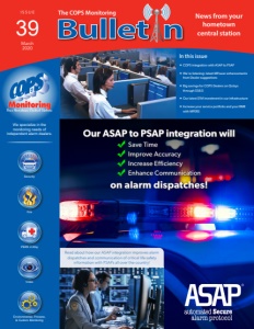 Fire PERS 2-Way Security Video Environmental, Process, & Custom Monitoring The COPS Monitoring We specialize in the monitoring needs of independent alarm dealers. News from your hometown central station In this issue COPS integration with ASAP to PSAP We're listening: latest MPower enhancements from Dealer suggestions Big savings for COPS Dealers on Qolsys through SS&Si Our latest $1M investment in our infrastructure Increase your service portfolio and your RMR with MPERS I S S U E 39 March 2020 Our ASAP to PSAP integration will on alarm dispatches! Save Time Improve Accuracy Increase Efficiency Enhance Communication Read about how our ASAP integration improves alarm dispatches and communication of critical life safety information with PSAPs all over the country!
